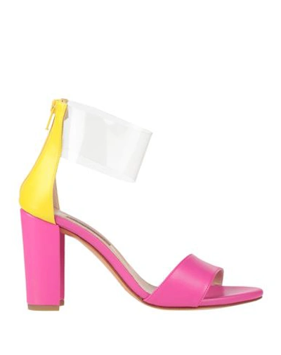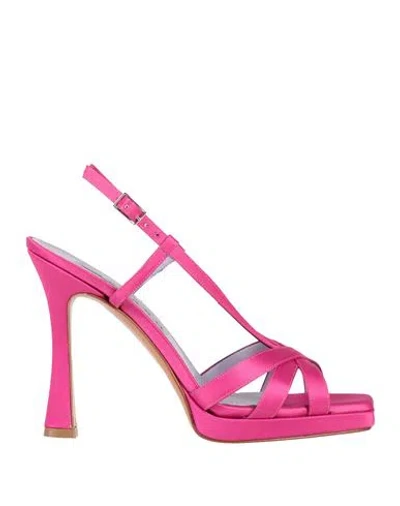 Woman Sandals Fuchsia Size 9 Textile Fibers In Pink