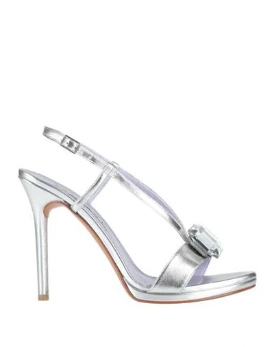 Woman Sandals Platinum Size 8 Textile Fibers In Grey