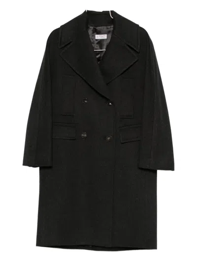 Double-breasted Coat Featuring Notched Lapels In Black