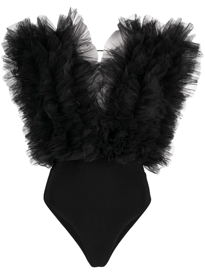 X Lia Aram Ruffle-detail Bodysuit In Black