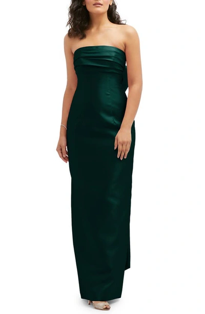Strapless Bow Back Satin Column Gown In Evergreen