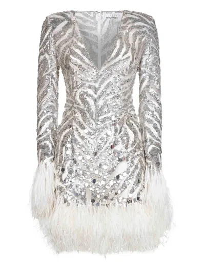 Pearl Grey Embroidered Tulle Minidress In Silver