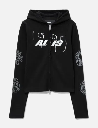 Nortey Rib Jersey Hoodie With Zipper And Embroidery In Black