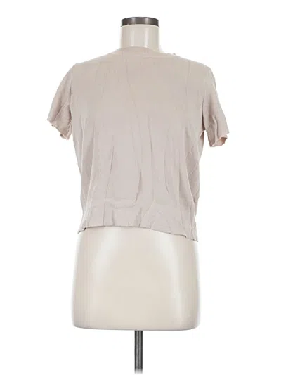 Pre-owned Short Sleeve Top Tan Mock Neckline Tops In Brown