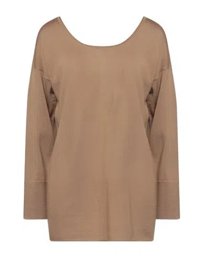 Woman Sweater Camel Size 4 Modal, Cashmere In Beige