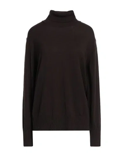 Woman Turtleneck Dark Brown Size 12 Wool