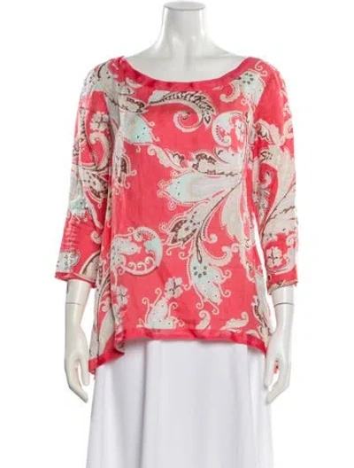 Pre-owned Linen Paisley Print Blouse In Pink