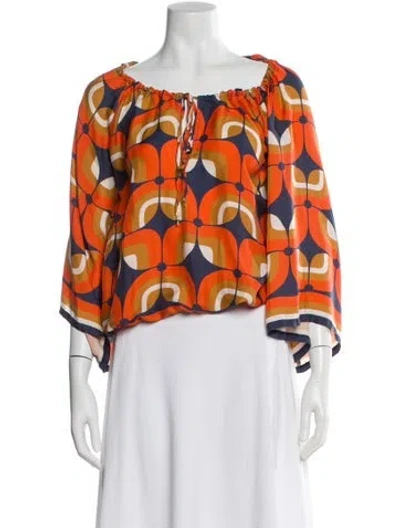 Pre-owned Silk Patterned Blouse In Orange