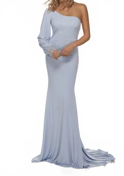 One Shoulder Side Slit Formal Dress In Vintage Mint In Blue