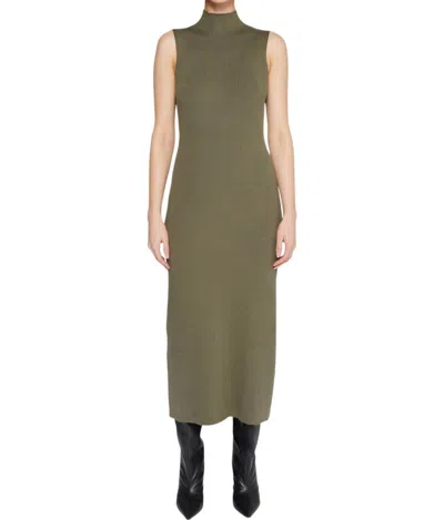 Naomi Ribbed Dress In Olive In Green