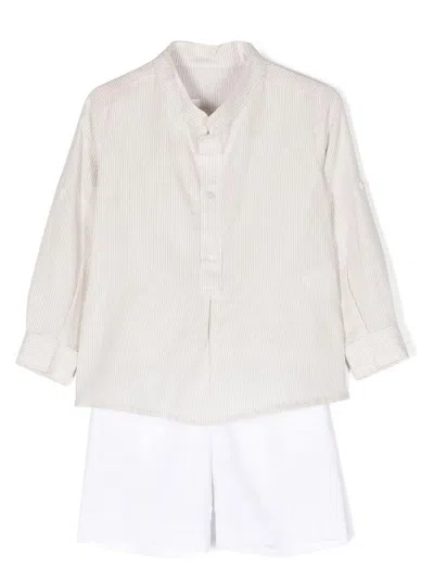 Kids' Pinstriped Linen-cotton Shirt And Shorts Set In Neutrals