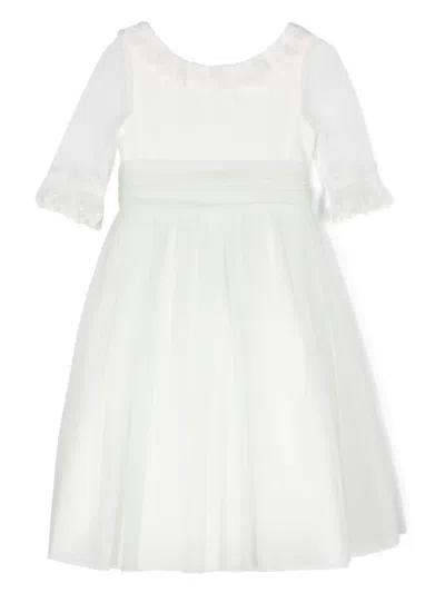 Kids' Floral-appliqué Tulle Dress In 白色