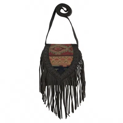 Fringed Cowgirl Crossbody Bag In Woven Tapestry In Multi