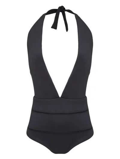 Plunging V-neck Swimsuit In Schwarz