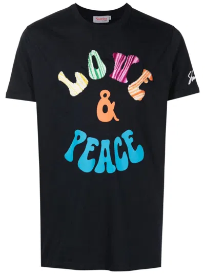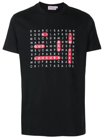 Besticktes T-shirt Mit Print In Black