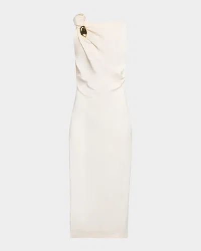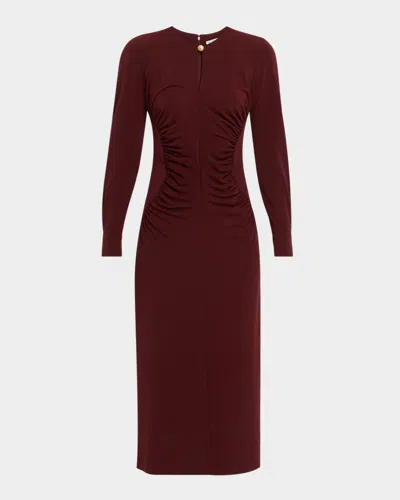 Gabrielle Ruched Long-sleeve Ankle Dress In Brown