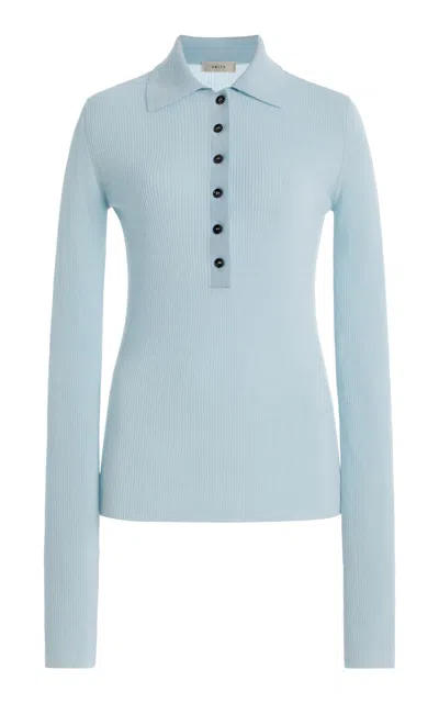 Georgia Fitted Wool Polo Top In Blue