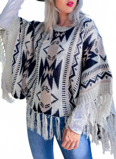 Prairie Moon Knit Tassel Top In Beige / Black / Ivory In Blue