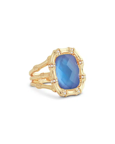 Bamboo Stone Statement Ring In 18k Gold Plated In Blue