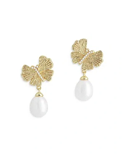 Butterfly Cultured Freshwater Pearl Drop Earrings In 18k Gold Plated In White/gold