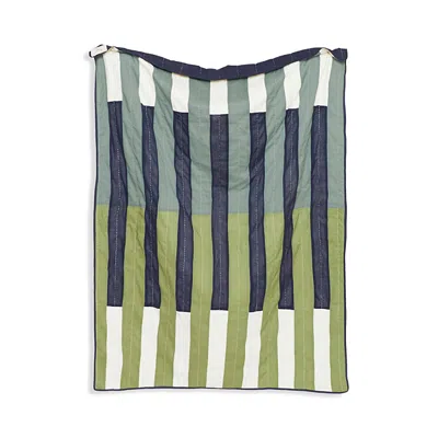 Offset Stripe Quilted Throw Blanket In Green Tones