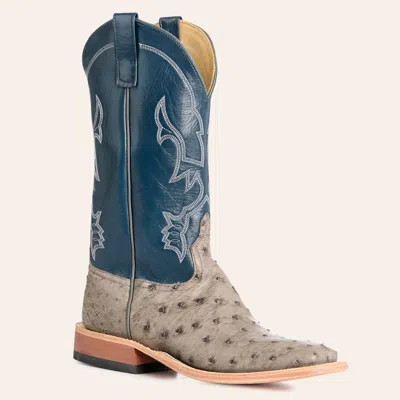 Anderson Bean Men's Blue & Gray Full Quill Ostrich Wide Square Toe Cowboy Boots In Multi