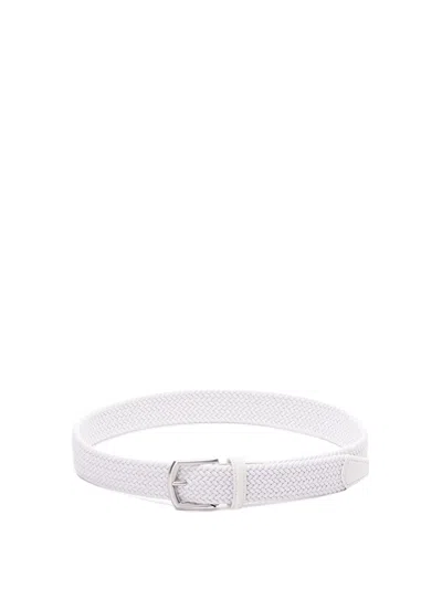 3.5cm Leather-trimmed Woven Elastic Belt In Beige