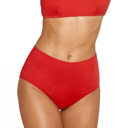 High Waisted Bikini Bottom In Cherry Red