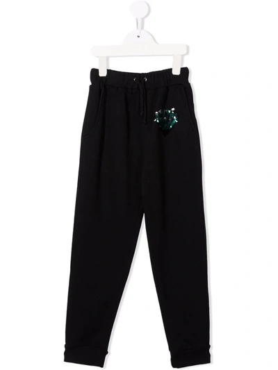 Kids' Sequin-embroidered Track Pants In Black
