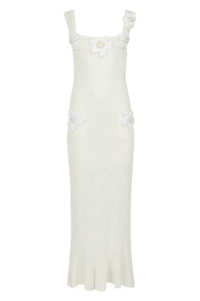 Women's Chrysanthemum White Knit Dress With Swarovski Details