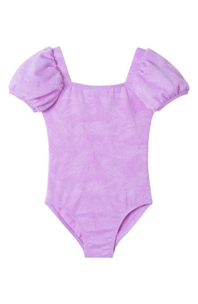 Kids' Palm Leaf Embossed One-piece Swimsuit In Purple