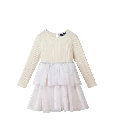 Girls' Rib Knit/glitter Tulle Tiered Dress - Little Kid In Neutral