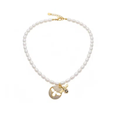 Women's Gold Seeds Pearl Choker Necklace With Bee Pendant
