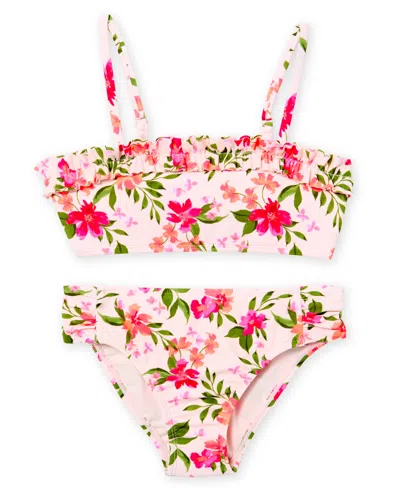 Kids' Girls 7-16 Floral Garden Swim Square Neck Bikini Top And Bottom, 2-piece Set In Pink