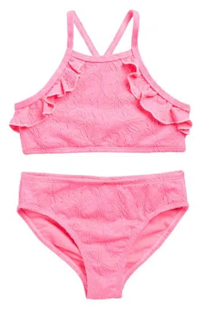 Kids' Rashguard Top, Bikini Top & Bottoms Set In Pink