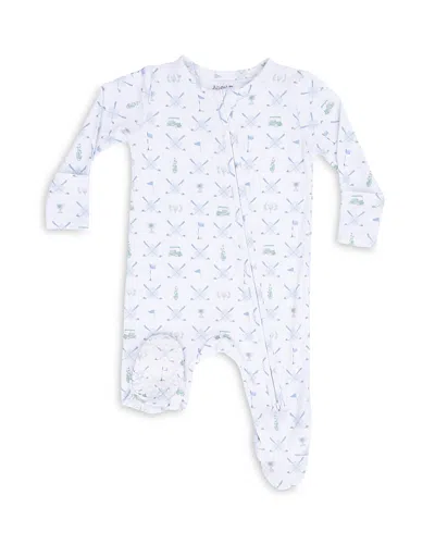 Kids' Boys' Golf Trellis Blue Two Way Zipper Footie - Baby In White