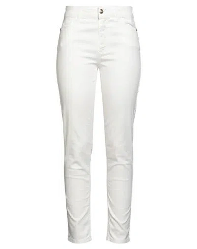 Woman Pants Ivory Size 10 Cotton, Elastane In White