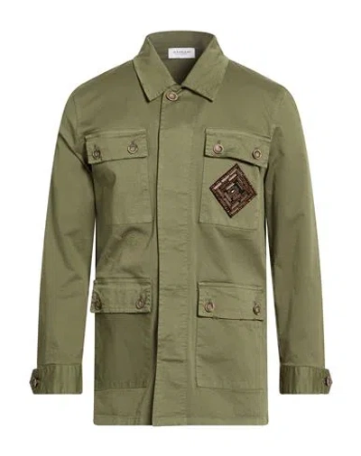 Man Jacket Military Green Size 42 Cotton, Elastane