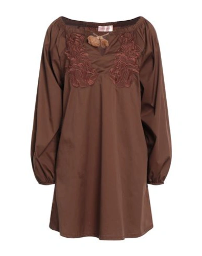 Woman Mini Dress Brown Size 10 Cotton, Nylon, Elastane
