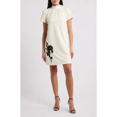 Gathered Mock Neck Shift Dress In Neutral