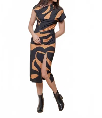 Sakura Midi Dress In Camel Mix In Black
