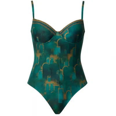 Women's Green / Gold Marrakech Bralette One Piece Swimsuit In Blue