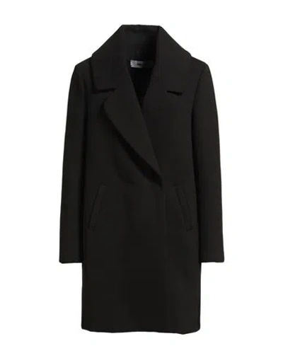 Woman Coat Black Size L Polyester In Pattern