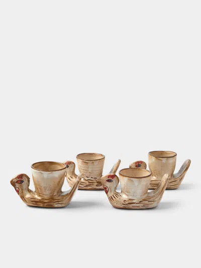 Chicken Hand-painted Ceramic Egg Cups (set Of 4) Anut Cairo Abask Gift Set In Neutral