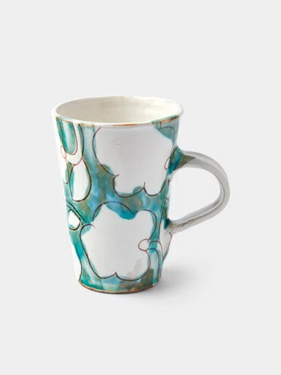Cotton Flower Hand-painted Ceramic Mugs (set Of 4) Anut Cairo Abask Gift Set In Blue