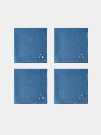 Starry Hand-embroidered Linen Napkins (set Of 4) Anut Cairo Abask Gift Set In Blue