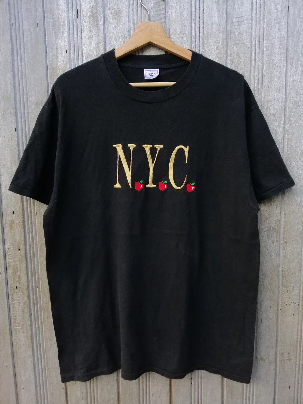 Pre-owned Vintage 90's N.y.c Embroidery Tshirt Small Logo In Black