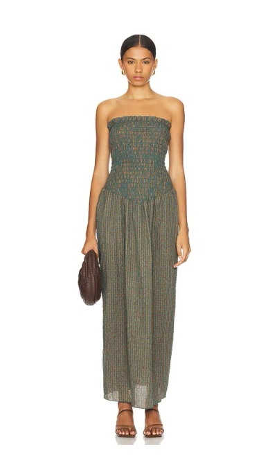 Ruched Strapless Maxi Dress In Pine Check