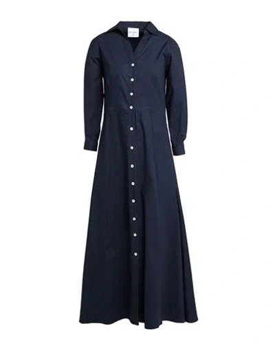 Woman Midi Dress Navy Size 12 Cotton In Blue