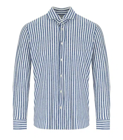 White Blue Linen Effect Shirt